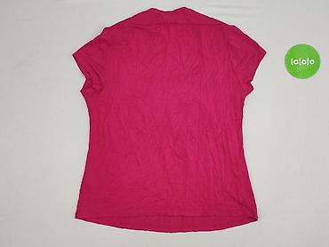 Bluzka damska BM, rozmiar 12 (z metki). - Kolor: intensywny róż/fuksja - Krój: dopasowany, długość do bioder - Dekolt: okrągły z ozdobnymi falbanami i oblekanymi guziczkami przy linii dekoltu...