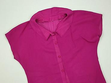 Bluzka damska w intensywnym odcieniu fuksji - Krój: luźny, z lekko zaokrąglonym dołem (dłuższy tył), krótki rękaw - Dekolt: w kształcie litery V z krótką patką - Materiał: cienki, lekko prześwituj...