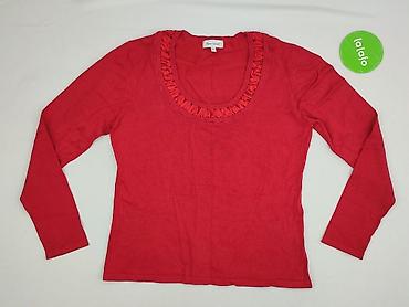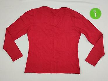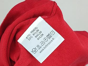 Bluzka damska w kolorze intensywnej czerwieni z dekoracyjnymi rękawami z tiulu - Rozmiar: L (z metki) - Materiał: 100% poliester - Krój: klasyczny T-shirt z okrągłym dekoltem - Detale: przód zdobi...