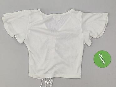 Biała koronkowa bluzka damska - Krój: krótka bluzka/top z dekoltem w serek, zapinana z przodu na małe zatrzaski/guziki; lekko wydłużony środek dołu z przodu i z tyłu. - Rękawy: krótkie, z ażurowej...