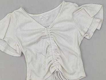 Bluzka damska z miękkiej, marszczonej tkaniny (double gauze) – kolor ecru/kość słoniowa. - Skład: 100% bawełna (metka w środku) - Rozmiar z metki: L - Krój: luźny, przewiewny - Rękaw: krótki - Dek...