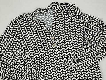 Bluzka damska z długim rękawem, rozmiar L. - Wzór: geometryczny, retro – beżowo-szare prostokąty i owalne motywy na białym tle - Fason: luźny, prosty krój - Dekolt: w serek z krótką listwą guzikow...
