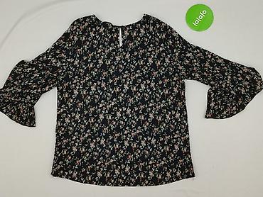 Bluzka damska w kwiatowo-motylim princie - Rozmiar: S (EUR S) - Fason: prosta bluzka z okrągłym dekoltem - Rękawy: 3/4, z marszczeniami/gumkowaniem na ramionach i w górnej części rękawów, lekko ro...