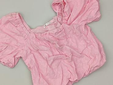 Bluzka damska Sinsay - Model: krótka bluzka z dekoltem kopertowym - Rozmiar z metki: XXS - Wzór: niebiesko‑biała łączka (kwiaty) - Rękawy: 3/4, lekko bufiaste, marszczone przy mankietach - Dół: el...