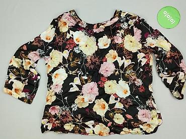 Damska bluzka z nadrukiem roślinnym - Rozmiar: XL (metka widoczna na zdjęciu) - Krój: prosty, lekko dopasowany - Rękaw: 3/4 - Dekolt: okrągły - Wzór: kwiatowo‑liściasty na czarnym tle (odcienie ró...