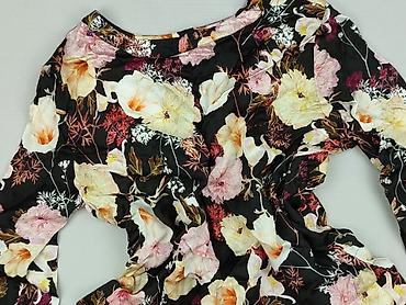 Bluzka damska z wzorem kwiatowym - Krój: prosty, skrócony, z bardzo szerokimi bufiastymi rękawami do łokcia - Dekolt: okrągły - Tkanina: lekko strukturyzowana, cienka, zwiewna - Wzór/kolor: drobne...