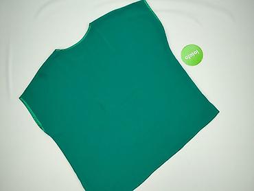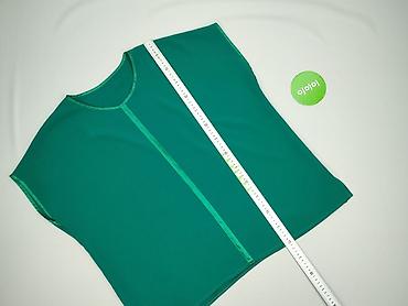 Zielona bluzka damska z krótkim rękawem - Marka/etykieta: RR (na metce) - Rozmiar: 44 FR - Krój: luźny, lekko zaokrąglony dół - Dekolt: w kształcie litery V - Zapięcie: rząd materiałowych guzików ...