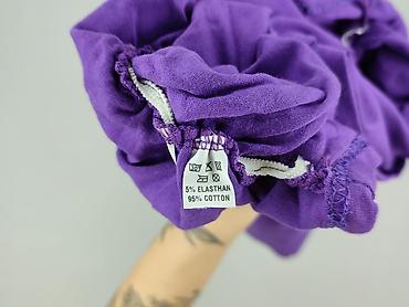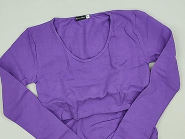 Fioletowa bluzka damska z bufkami – rozmiar M - Krój: prosty, z okrągłym dekoltem - Rękawy: do łokcia, efektowne bufki z marszczeniem przy ramionach - Materiał: elastyczna, karbowana tkanina o wyr...