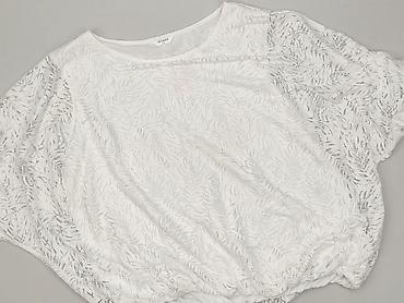 Biała bluzka damska z koronką na ramionach i plecach. - Rozmiar: XXL (widoczne na metce). - Krój: lekko luźny, z okrągłym dekoltem. - Rękawy: 3/4 z mankietem. - Materiał: cienka, przewiewna dzi...