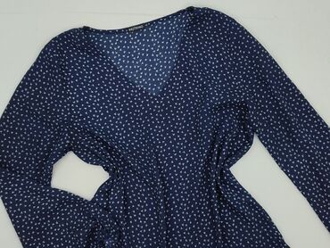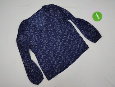 Bluzka damska IN EXTENSO, rozmiar 38. - Kolor: granatowy - Wzór: drobne kropki (białe, żółte, jasnoniebieskie) - Materiał: 100% wiskoza (miękka i przewiewna; metka ze składem na zdjęciu) - Fason: ...