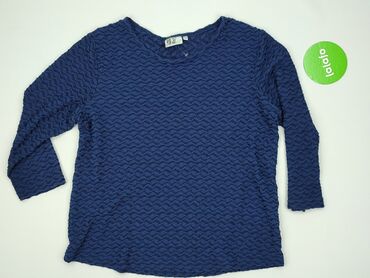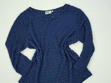 Damska bluzka z długim rękawem, granatowa - Krój: luźny, z subtelnymi zakładkami przy dekolcie - Dekolt: półokrągły - Rękawy: długie, zakończone gumką (delikatne bufki) - Dół: lekko zaokrąglony, z...