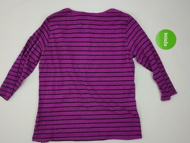 Bluzka damska F&F - Rozmiar: EU 40 (UK 12) - Krój: luźny, z zaokrąglonym dołem; dekolt łódkowy - Rękawy: 3/4 z możliwością podpięcia na guziczek - Wzór: poziome paski w kolorze fioletowym i różowy...