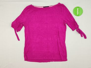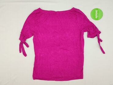 Bluzka damska w kolorze intensywnego fuksji. - Krój: luźny, z marszczeniem pod dekoltem - Dekolt: szeroki, zaokrąglony - Rękaw: do łokcia - Rozmiar z metki: M - Skład materiału: 96% wiskoza, 4% el...