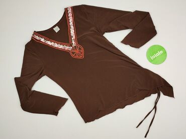 Bluzka damska WE, rozmiar L - Kolor: ceglany/brązowy - Fason: luźna, z dłuższym dołem, długi rękaw - Dekolt w kształcie litery V ozdobiony dużymi cekinami w odcieniach złota, miedzi i srebra (ceki...