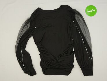 Stylowa bluzka idealna na wieczorne wyjścia: elegancki dekolt, efektowne siateczkowe rękawy z ozdobami i dekoracyjne marszczenia, które optycznie wysmuklają sylwetkę. Elastyczna tkanina zapewnia wygodę i dopasowanie. Marka: JANE’S. Rozmiar z metki: L/XL.