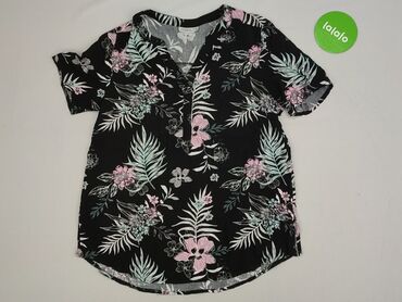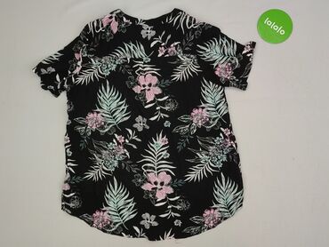 Bluzka damska JANINA - Rozmiar z metki: EU 38 (F 40) - Fason: długi rękaw, dekolt w serek, lekko dopasowana w talii, długość do bioder - Wzór: kwiatowy na czarnym tle; odcienie pudrowego różu, błę...