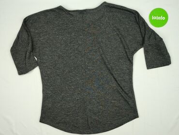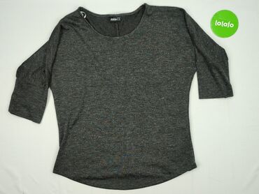 Bluzka damska Janina, rozmiar M. - Krój oversize z obniżoną linią ramion - Rękawy 3/4 - Okrągły dekolt z jasną lamówką - Melanżowa dzianina w odcieniach szarości na górze - Dół imitujący koszulę: ...