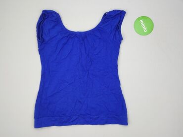 Bluzka damska Janina z krótkim rękawem - Krój: luźny, z elastycznym dekoltem typu hiszpanka (można nosić na ramionach lub opuszczoną). Dół również na gumce. - Wzór: geometryczny, niebieskie romby ...Stan: