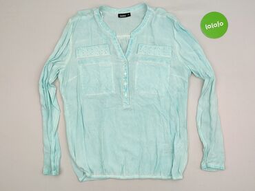Bluzka damska Janina - Rozmiar: 40 - Kolor: miętowy/turkusowy - Materiał: 100% wiskoza (lekka, przewiewna) - Krój: luźniejszy, zaokrąglony dół - Dekolt: w serek z krótką listwą guzikową (4 guziki)...Stan:
