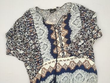 Bluzka damska JANINA - Rozmiar z metki: EU 40/42/44 (luźny fason – tunikowy krój) - Materiał: 100% wiskoza – lekka, przewiewna, miękka w dotyku - Wzór: patchwork/paisley i kwiaty w odcieniach nieb...