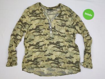 Bluzka damska Janina, rozmiar EU 42 (IT 46, FR 44). - Zwiewna, półprzezroczysta tkanina z delikatną fakturą w prążek - Kwiecisty wzór w odcieniach fioletu, różu, żółci i zieleni na jasnobłękitnym...