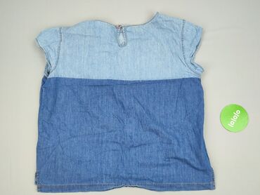 Bluzka damska z dekoltem na plecach - Fason: lekko taliowana, z zaokrąglonym dołem (tył nieco dłuższy) - Rękawy: krótkie, z jasnymi wywinięciami - Kolor/wzór: jasny denimowy błękit, melanż/tekstur...