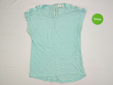 Bluzka damska w kolorze miętowym. - Krój: luźny, z dekoltem w serek - Rękawy: krótkie, szerokie z delikatnym marszczeniem przy ramionach - Przód: pionowe marszczenie ze ściągaczem/sznureczkiem do ...Stan: