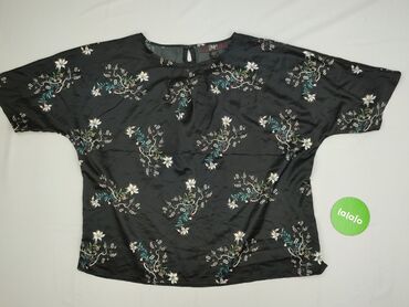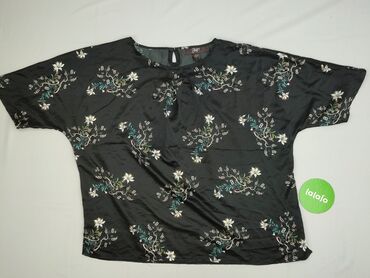 Czarna bluzka w białe, drobne kwiaty - Rozmiar: 3XL (na metce) - Materiał: 100% poliester - Fason: luźny, lekko rozkloszowany dół - Rękawy: długie, delikatnie rozszerzane - Dekolt: w kształcie lit...
