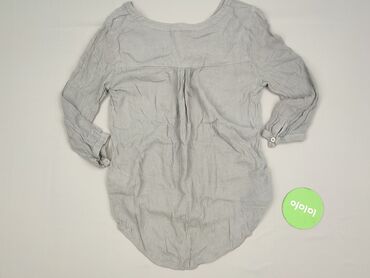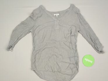 Bluzka damska H&M, rozmiar S. - Kolor: jasnoszary melanż z białą, szyfonową wstawką u dołu - Krój: długi rękaw, okrągły dekolt, lekko dłuższy tył - Detal z tyłu: rozcięcie na plecach odsłaniające ...