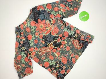 Bluzka damska w kwiaty – zwiewna, transparentna - Krój: luźny, ponczo/kimono z szerokimi rękawami - Dekolt: V z ozdobną, koronkową lamówką i krótką listwą z guzikami - Wzór: drobne, wielobarwne kw...