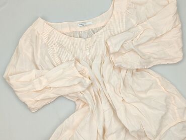 Bluzka damska bez nadruku, w kolorze pudrowego różu. - Krój: luźny, prosta linia, lekko opuszczone ramiona/kimonowe krótkie rękawki - Dekolt: okrągły - Dół: prosty - Tkanina: miękka, cienka, przyj...Stan: