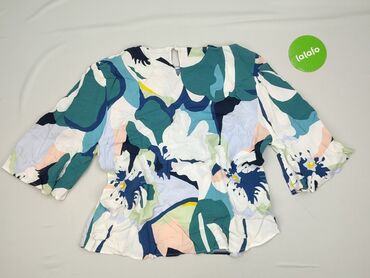 Bluzka damska KappAhl, rozmiar M - Fason: lekko taliowana, z długimi rękawami zakończonymi delikatną gumką; dekolt w kształcie litery V z krótką stójką - Wzór: gęsty, botaniczny nadruk na jasnym t...