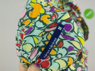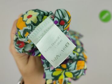 Bluzka damska YES NO, rozmiar M - Krój: luźna bluzka z krótkim rękawem, dekolt w serek, delikatne falbanki przy kołnierzu i na dole - Wzór: czarny materiał w drobne białe kropeczki z różanym motyw...