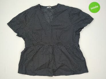 Bluzka damska Lindex w grochy - Marka: Lindex - Rozmiar z metki: 46 - Kolor: granatowy w białe grochy - Krój: lekko taliowana, długość do bioder - Rękaw: krótki, delikatnie bufkowany - Dekolt: zao...