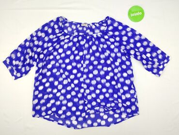 Bluzka damska KIABI - Marka: KIABI - Rozmiar z metki: 42 (IT 46, RU 48, US 10) - Krój: prosta bluzka z krótkim rękawem - Kolor: kobaltowy/ciemnoniebieski - Wzór: drobne białe kropki i trójkąty na ...