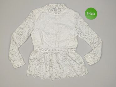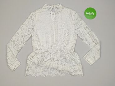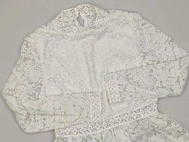 Biała koronkowa bluzka z długim rękawem - Fason: kopertowy/przód w kształcie litery V z dekoracyjną, szeroką koronką przy dekolcie - Tył również z łagodnym V - Rękawy: długie, proste - Materiał: m...