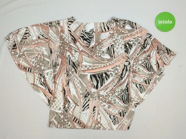 Bluzka damska z motywem motyli - Krój: luźna koszulowa bluzka z krótkim rękawem - Dekolt: w kształcie litery V, zapinana na guziki z przodu - Detale: elastyczne, marszczone wstawki (smocking) na w...
