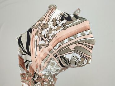 Bluzka damska z kolorowym, etnicznym nadrukiem - Krój: luźniejszy top z szerokimi, motylkowymi rękawami; głęboki dekolt V z przodu i z tyłu; wiązanie na troczki przy karku; lekko zwężana dolna kra...
