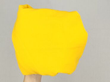 Bluzka damska oversize w intensywnym żółtym kolorze. - Krój: luźny, z obniżoną linią ramion i krótkimi, szerokimi rękawami; lekko krótszy przód i dłuższy tył. - Dekolt: stójka/falowana stójka zapi...