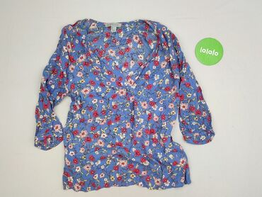 Bluzka damska TOM & ROSE, rozmiar M. - Krój: luźny, z krótkim rękawem typu kimono - Dekolt: okrągły, z lekkim marszczeniem/sznureczkiem przy szyi - Wzór: niebieski paisley z roślinnymi motywami w ...
