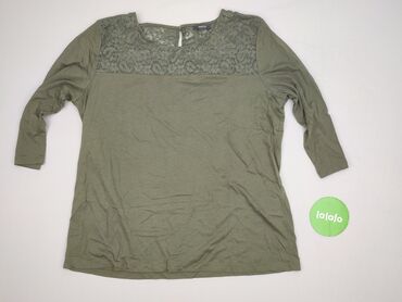 Bluzka damska, kolor oliwkowy/khaki, rozmiar XL. - Fason: luźna bluzka z długim rękawem - Dekolt: w serek z krótką listwą guzikową (3 guziki z przodu) - Przód: ozdobny, ażurowy panel z koronki o r...