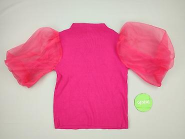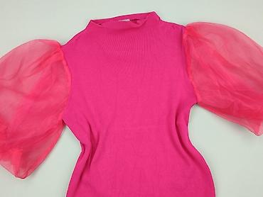 Bluzka damska w kolorze intensywnej fuksji. - Fason: luźny, z okrągłym dekoltem i długim rękawem - Ozdoby: aplikacje z perełkami na przodzie i ramionach, wstawki z cekinowej koronki na ramionach -...