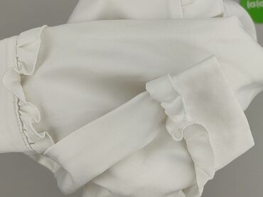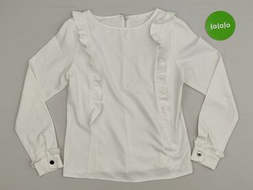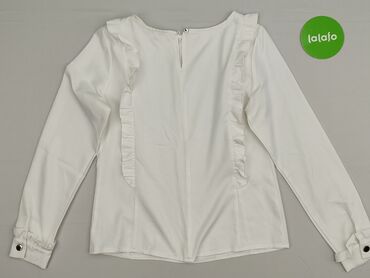 Biała bluzka damska marki LAKIKI, wyprodukowana w Polsce. Charakteryzuje się dekoltem w kształcie litery V oraz długimi rękawami zakończonymi ściągaczami z ozdobną falbanką. Marszczenia na ramionac...Stan: