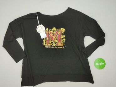 Bluzka damska JANE’S, rozmiar S-M. - Kolor: czarny - Krój: luźny, z obniżoną linią ramion i krótkim, szerokim rękawem; łódkowy dekolt - Materiał: cienka, elastyczna dzianina bawełniana z domieszką ...