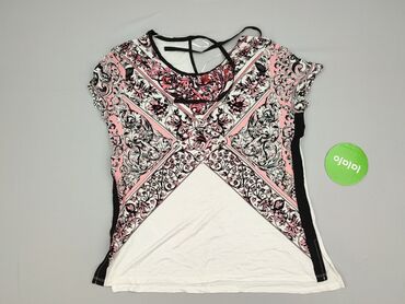 Bluzka damska LAURA TORELLI FASHION (NKD) – rozmiar XS - Krój: lekko luźna, z dekoltem w szpic, krótkie rękawy z troczkami do wiązania - Zapięcie: rząd małych guzików z przodu - Dół i rękawy z ela...