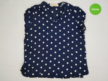Bluzka damska w grochy - Rozmiar: L - Fason: klasyczny, lekko luźny - Rękaw: 3/4 - Dekolt: okrągły - Wzór: białe groszki na granatowym tle - Materiał: 70% wiskoza, 30% poliester – przewiewna, mięk...