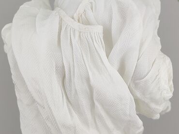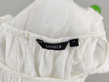 Biała bluzka damska Lindex, rozmiar S. - Krój: krótki, luźny, z obniżoną linią ramion; rękawy szerokie, długość do łokcia - Dekolt: okrągły, wykończony dzianinowym ściągaczem - Materiał: 100% poli...