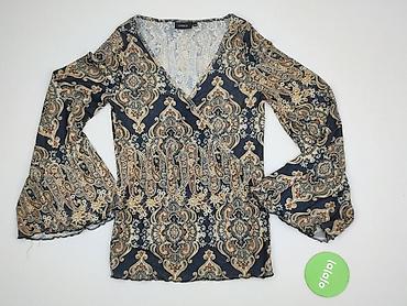 Bluzka damska Lindex, rozmiar S (EUR/UK). - Fason: z długim rękawem, kopertowy/zakładany przód z dekoltem w kształcie V - Wzór: wielobarwny, abstrakcyjne liście/pióra w odcieniach granatu, fioletu...