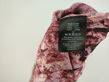 Bluzka Lindex, rozmiar L (EU/UK). Zwiewna, lekko prześwitująca tkanina z wielokolorowym, patchworkowym wzorem etno/boho: odcienie zieleni, granatu, bordowego, żółtego i różu w geometryczne motywy. ...