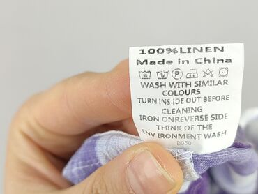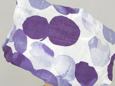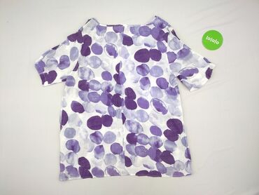 Krótki rękawLniana bluzka damska z krótkim rękawem, charakteryzująca się luźnym fasonem i okrągłym dekoltem. Wzór w duże, nieregularne fioletowe koła na białym tle dodaje jej unikalnego charakteru. Zapięcie na guziki z przodu ułatwia zakładanie. Idealna na ciepłe dni, zapewniająca przewiewność i komfort noszenia.